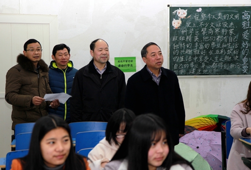 吴桃娥副校长和杨耀防副校长来到竞知楼、向学楼、竞秀楼等检查学生到课情况,向师生表示新学期的问候,希望同学们新学期学习愉快、生活愉快。王万山副校长对浔东校区新学期的第一课教学秩序进行了检查,听取了浔东校区负责人的工作汇报。陶春元副校长到外国语学院检查第一课情况,随后来到外国语学院教工活动中心和艺术中心视察。杨焱林副校长来到庐峰校区检查第一课情况。校纪委魏立平书记到八里湖校区检查了第一课学生上课的基本情况,他向师生表示新年问候,鼓励大家好好学习,并送上元宵佳节的祝福!