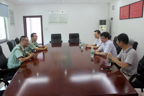 王万山副校长一行首先来到九江市消防支队,同陈志明副支队长一行进行了座谈。王万山副校长首先向九江消防全体官兵致以节日祝贺和慰问,对消防官兵多年来给予我校消防工作的大力支持表示感谢。陈志明副支队长对王万山副校长的到来表示感谢,对多年来与学校保持的军民共建关系予以了肯定,在向王万山副校长简单介绍了支队情况后,就进一步加强师生消防业务培训等进行了欢快的交流与探讨。