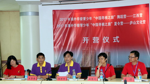 6月18日下午,由国务院侨务办公室主办,江西省外事侨务办公室承办,九江学院协办的“2017年海外华裔青少年‘中国寻根之旅’夏令营——庐山文化营暨舞蹈营——江西营开营仪式”在九江学院一号会议室隆重举行。副校长杨耀防与来自美国、加拿大的120余名营员及领队老师一同出席了开营仪式,仪式由、国际合作交流处副处长王贤淼主持。
