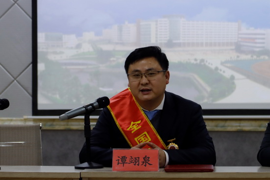 刚刚赴京参加全国表彰大会载誉归来的谭翊泉老师传达了习近平总书记在全国劳动模范和先进工作者表彰大会上的重要讲话精神,畅谈了参加表彰大会的切身感受。他从深刻认识党的十九届五中全会意义、全面把握十八大以来我国历史性成就和当前形势、2035年远景目标和“十四五”时期主要目标任务等方面进行了系统阐述,结合自己扎根基层、投身脱贫攻坚的青春故事,对新发展阶段、新发展理念、新发展格局等重大问题进行了分析和深入解读,为大学生带来了一场真实鲜活、贴近青年群众、激励人心的宣讲。