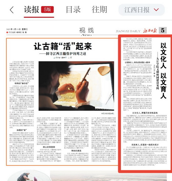 文化育人,润物无声。除“濂溪讲坛”外,学校还深入推进“一院一品”校园文化建设,持续开展读书月、大学生文化节、高雅艺术进校园等形式多样、健康向上、格调高雅的校园文化活动。同时,积极弘扬以庐山为地标的优秀传统文化,把历代文化巨匠关于庐山的精美诗文融入《大学语文》必修课本,开设了《陶渊明研究》《庐山文化》等富有地域特色的课程,努力把文化资源优势转化为育人优势。