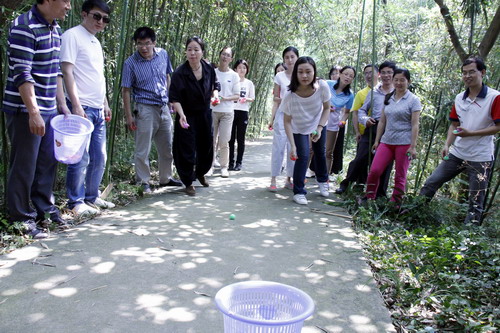 文化调研之际,学院还组织开展了主题为“和谐人文”的户外素质拓展活动。在各类趣味运动的参与过程中,老师们呼吸着野外新鲜的空气,感受到集体的力量和团结的乐趣,竹林中笑语声声,欢乐满怀。