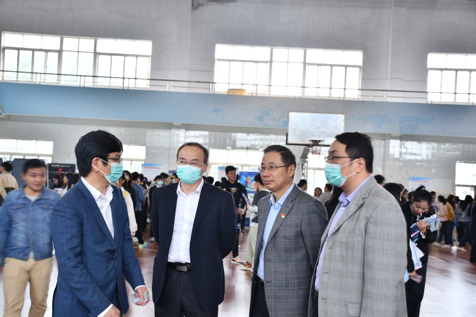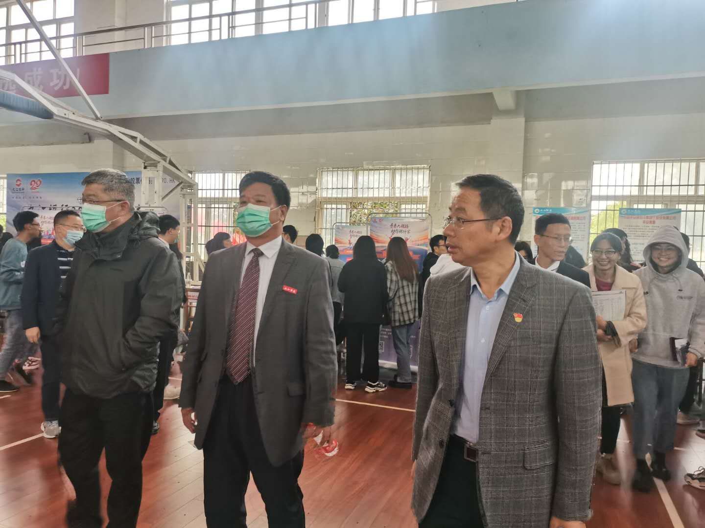 在招聘会现场,副校长王万山、夏启国、陈春生、陈小林观看了招聘单位信息,了解了用人单位工作环境、员工资薪待遇、招聘要求等基本信息,并与企业代表、毕业生代表进行交谈,询问了毕业生就业意向和应聘情况。校领导对在场毕业生积极把握就业机会的态度表示了肯定,希望他们能勇于表现自我优势,赢取理想的职业岗位。