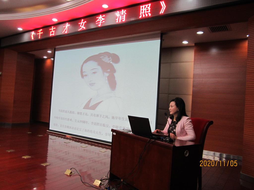 为加强中华传统文化教育,提升学生人文素养,11月5日晚,校党委统战部邀请江西省赣图大讲坛讲座嘉宾、浔庐讲坛学术委员会副主任、九江文化研究院特聘教授、我校文学与传媒学院兼职教授张龄之为主讲嘉宾,为我校师生讲解《千古才女李清照》。