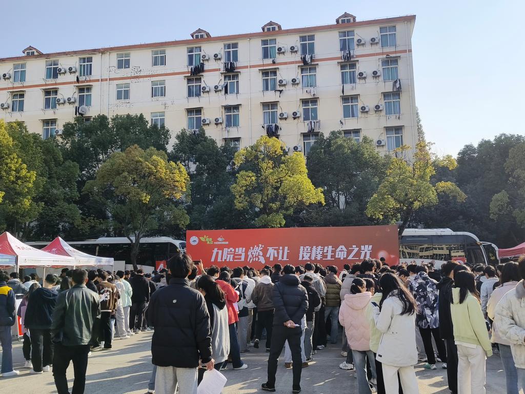 深秋微凉,爱心滚烫,12月3日下午,九江学院2025年无偿献血活动启动仪式在第三食堂门前广场举行。本次活动以“九院当‘燃’不让 接棒生命之光”为主题,旨在弘扬无私奉献精神,培养师生社会责任感。校党委委员、副校长吴维勇,九江市卫生健康委员会党委委员、副主任胡国斌,九江市中心血站党总支书记、站长丁杰,九江学院学生工作处负责人等出席活动。各二级学院学生科负责人及500余名学生志愿者参加仪式。